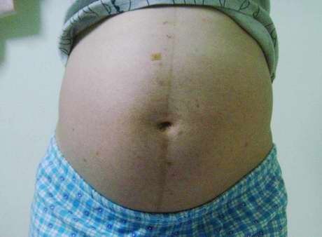肚子比2週前很明顯的變大很多,可以感受肚子的重量,