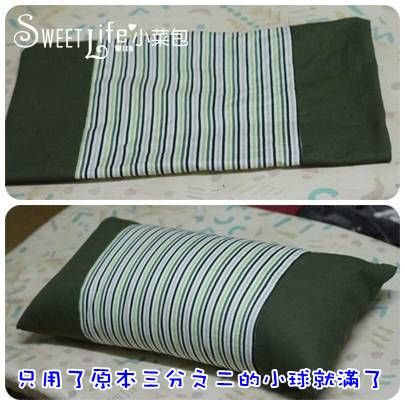 一樣是用綠色的布去做,菜包爸覺得原本枕頭太軟了,