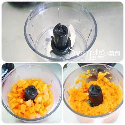 紅蘿蔔因為蒸過很軟,所以打一下就很爛了,
