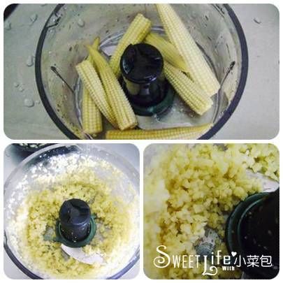 玉米筍則是可以打成像他上面的顆粒還要在小一點點。